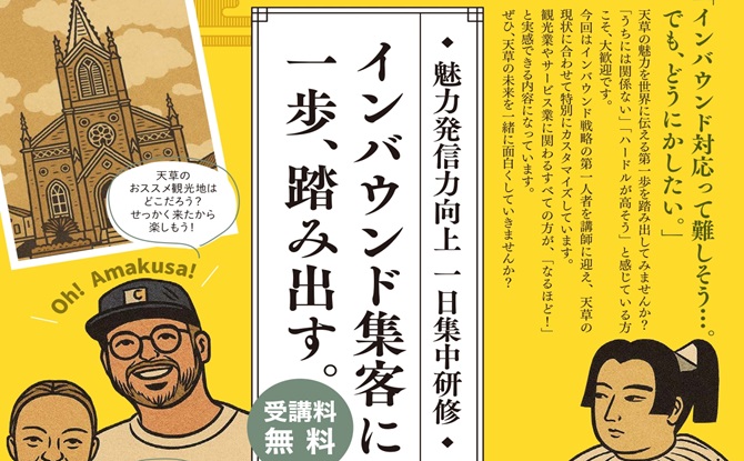 天草地域雇用創出協議会は、天草の雇用環境の改善を図ることを目的に、令和5年度厚生労働省の委託事業である地域雇用活性化推進事業(新しい観光と先端ITでつなぐ宝島・天草の未来)に取り組んでいます。