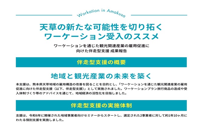 天草地域雇用創出協議会は、天草の雇用環境の改善を図ることを目的に、令和5年度厚生労働省の委託事業である地域雇用活性化推進事業(新しい観光と先端ITでつなぐ宝島・天草の未来)に取り組んでいます。